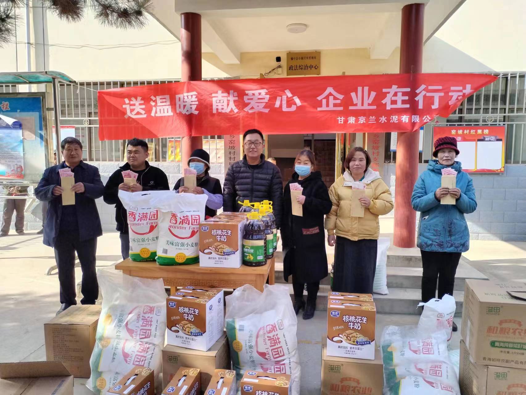 歲寒情更濃,牽掛暖人心。在春節(jié)來臨之際,甘肅京蘭水泥有限公司黨支部在企業(yè)所在地小康營鄉(xiāng)、新營鎮(zhèn)、高崖鎮(zhèn)開展了“送溫暖,獻愛心,企業(yè)在行動”村企聯(lián)建活動,主要對涉企鄉(xiāng)鎮(zhèn)的老年人、困難家庭及罹患重病人員進行了慰問。此次活動累計慰問困難群眾122人(戶),發(fā)放面粉(10kg)122袋、食用油(5kg)122桶、純牛奶122箱、重病人員500元現(xiàn)金/人。