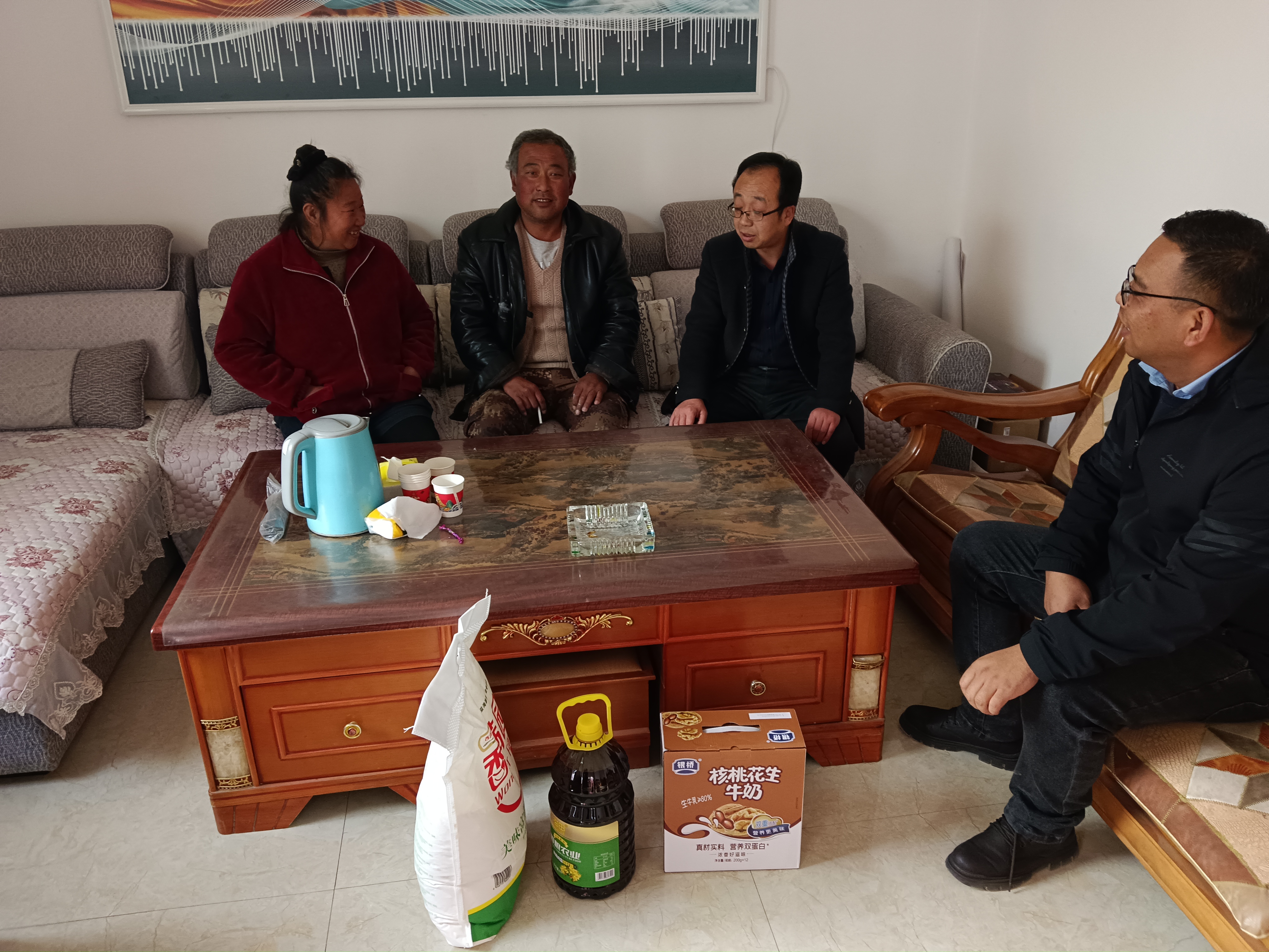 活動結(jié)束后,我公司黨支部書記陳禮協(xié)同高崖鎮(zhèn)人大主席金赟、砂河村書記張發(fā)軍對5戶困難家庭進行了上門慰問。通過走訪慰問,積極了解困難群眾的實際生活狀況,并詢問困難群眾的身體狀況,家庭收入等,幫助他們解決實際困難,鼓勵他們積極樂觀地面對生活,并為他們送去了慰問品以及節(jié)日的祝福,進一步體現(xiàn)出政府和企業(yè)對困難群眾的全方位關(guān)懷與照顧。